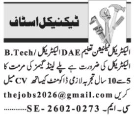 If you are looking for technical employment in Pakistan, new Electrical Technician Jobs 2026 in Lahore have been announced for skilled candidates. These opportunities are ideal for individuals who have technical qualifications in electrical work and want to build a professional career in the engineering or maintenance sector.