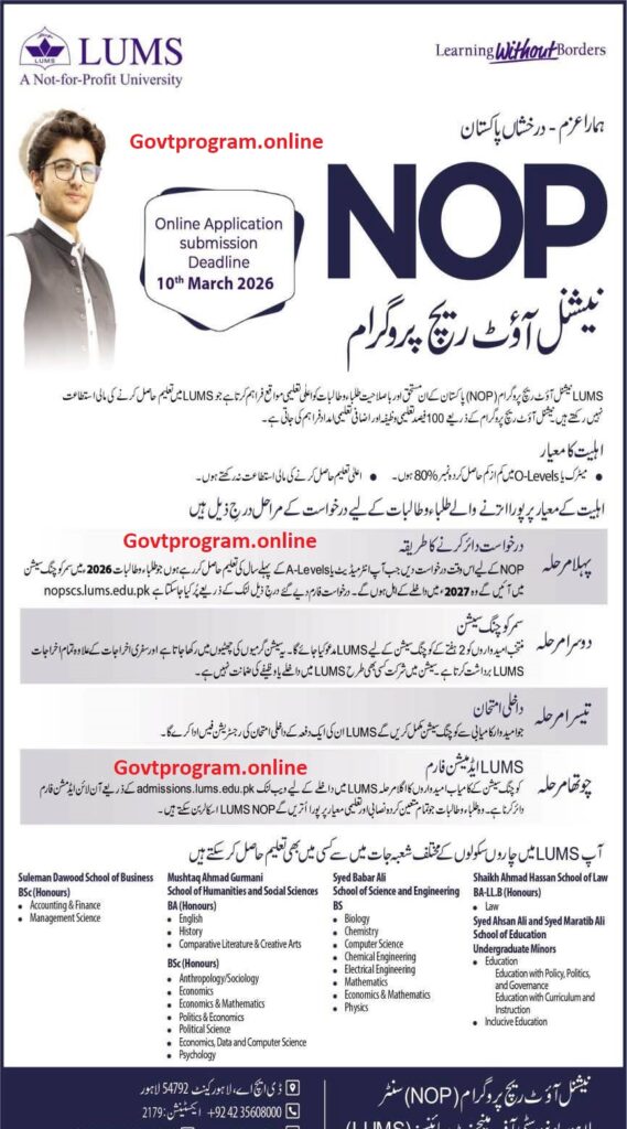For detailed information, program-specific requirements, and to access the online application portal, visit the official LUMS website: www.lums.edu.pk.